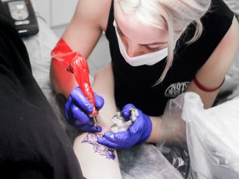 Подбирать краски и иглы, оборудовать рабочее место, стерилизовать инструменты и работать с тату-машинкой.